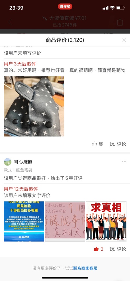 近期,有大陸網民晒出一張10月13日的外送單,點餐內容是一份單人份的微辣「金湯無刺酸菜魚」,備註內容寫著「請在B站關注白真飾演者發現公司洗(錢)證據後被虐S(死),800E(億)養老金不翼而飛事件,謝謝」。