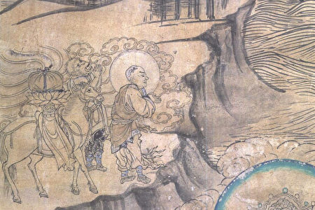 在西夏的壁畫上,還有一個令人震驚的發現——孫悟空。位於甘肅省酒泉市瓜州縣的榆林窟,與莫高窟並稱為姊妹窟。學界確認,榆林窟中多為西夏晚期壁畫。在榆林窟第二窟的西壁有兩幅《水月觀音圖》。北側圖中,一位端莊的觀音菩薩安詳地坐在金剛寶石座上,周圍祥雲繚繞。觀音座下,碧水漣漪,紅蓮飄浮。一彎新月高懸空中,一童子乘雲而來,向觀音合十行禮。茫茫碧水的彼岸,唐僧雙手合十,面向觀音膜拜;唐僧後一猴面行者一手牽著馱經的馬兒,另一手遮於額上,仰望觀音。