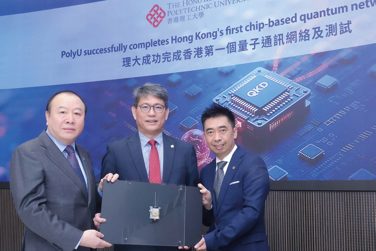 香港理工大學(理大)昨日公布,其科研團隊成功利用自研量子晶片,完成本港最長約55公里光纖量子通訊加密傳輸測試。網絡連接港九新界四個節點,涵蓋理大、一所大學及兩個位於將軍澳與柴灣的大型數據中心,測試結果顯示系統穩定。