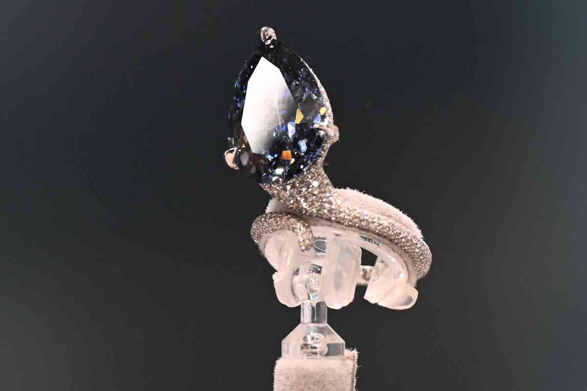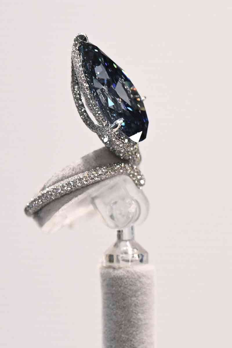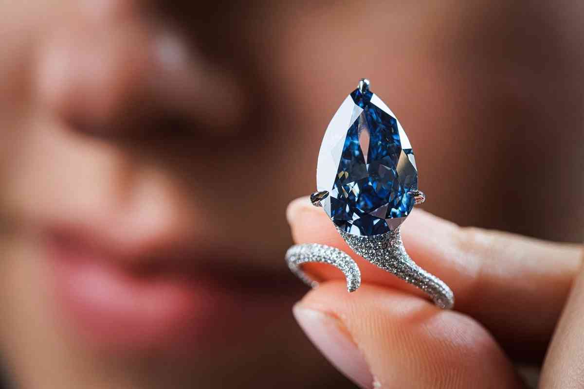 這顆原本為吊墜的梨形切割豔彩藍鑽目前被鑲嵌在蛇形戒指上,經鑑定為內部無瑕,是拍賣史上最璀璨奪目的有色鑽石之一。它曾由美國知名園藝家、慈善家兼藝術收藏家雷切爾‧蘭伯特‧梅隆(Rachel Lambert Mellon,又名邦妮‧梅隆,Bunny Mellon,1910—2014)珍藏數十年。