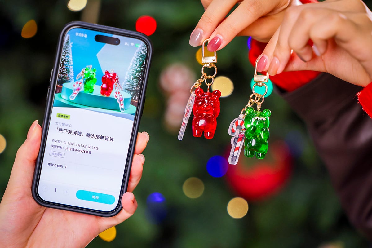 三位聖誕甜心躲於在太古城中心不同角落有,包括「薄荷糖漩渦樂園」、「蟲蟲糖鬼馬扭扭樹」和「美味橡皮豆豆站」。LIVE+會員只需於同日內找到並掃描其中兩位甜心的QR code,再追蹤太古城中心的Instagram @cityplazahk,即可換領「熊仔笑笑糖」糖衣掛飾盲袋一個。每會員賬戶於推廣期內每日只限換領禮品乙次,受條款及細則約束。禮品款式將隨機派發,先到先得,送完即止。