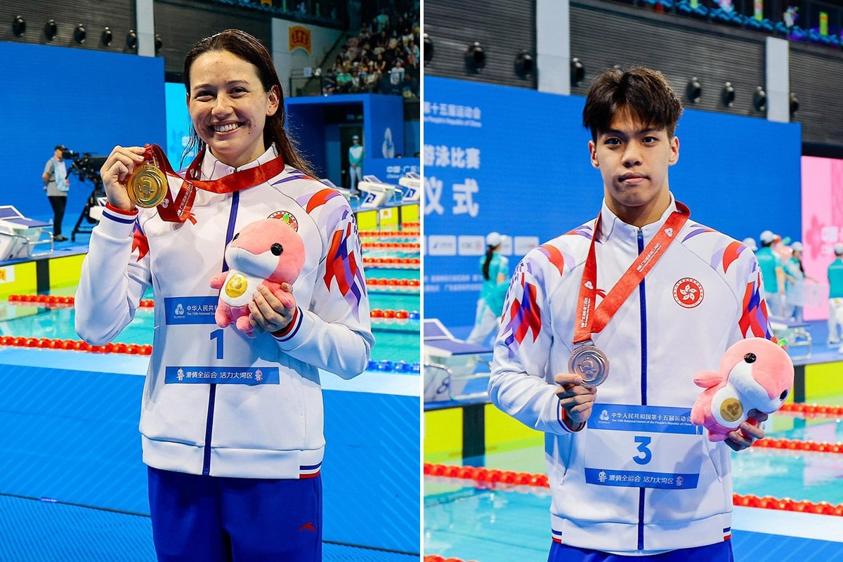 港隊昨日(15日)全日在全運會取得一金一銀三銅,其中何思蓓繼200米自由泳奪金再贏得100米自由泳金牌。港隊累計取得5金1銀4銅。
