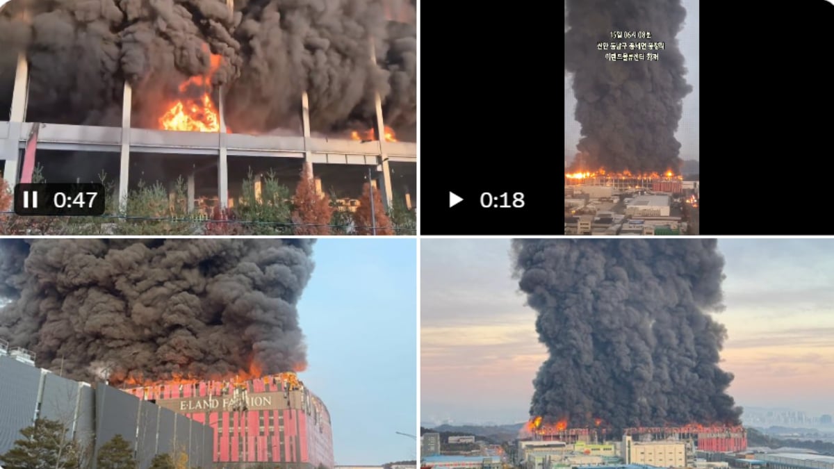 韓國忠清南道天安市衣戀集團(E-LAND)時尚物流中心11月15日發生大火,火勢持續燃燒兩天,倉庫內存放超過1,100萬件的衣服、鞋子恐全部燒燬。該物流中心曾是亞洲規模最大物流中心。