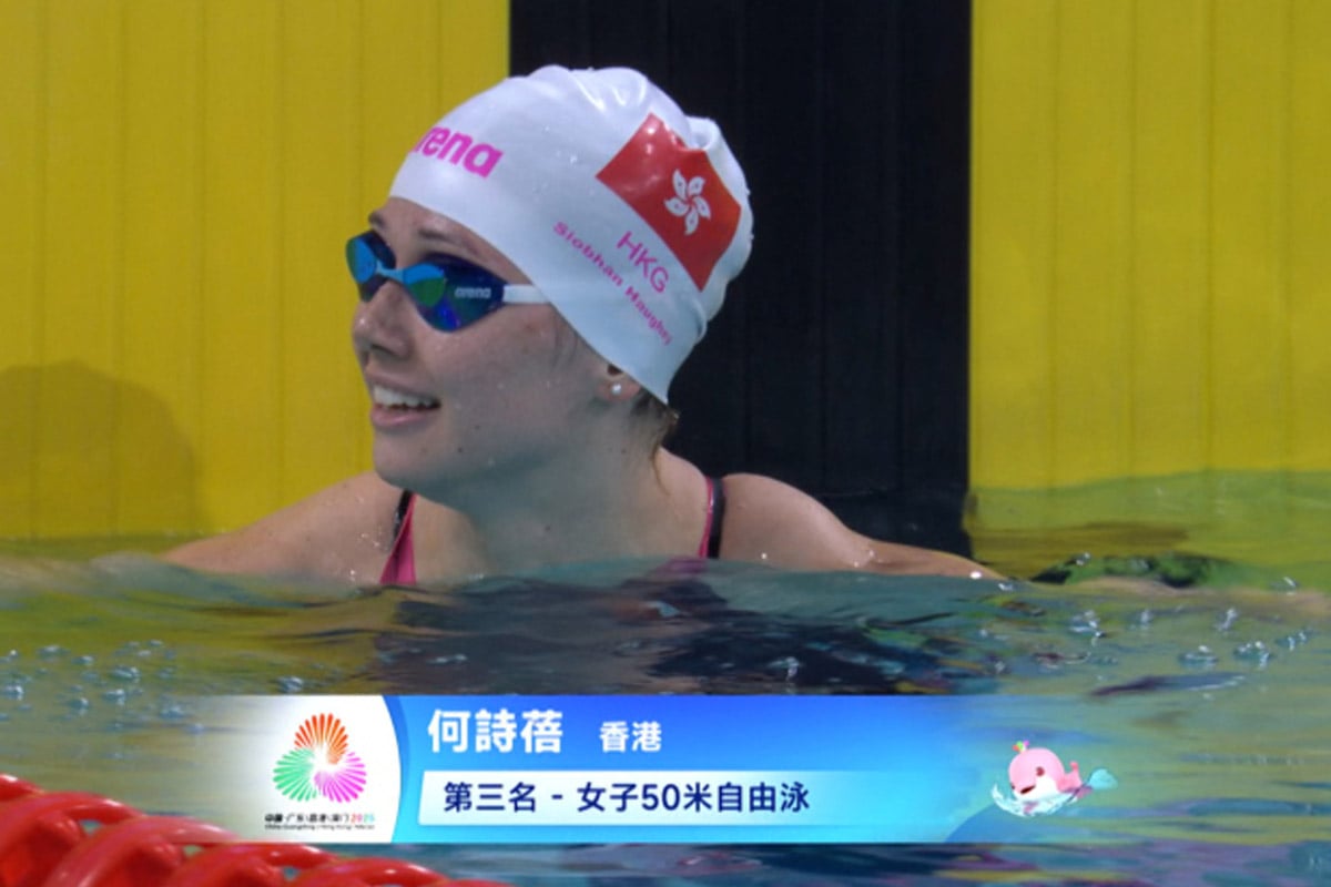 香港「女飛魚」何詩蓓今日(17日)在全運會游泳賽事中,僅相隔約5分鐘連戰兩場決賽。她成功在女子50米蛙泳及50米自由泳兩項賽事中各添一面銅牌,單屆累積獎牌數達到2金2銅,合共4面。她成為本屆香港代表團單屆贏得最多獎牌的選手,同時也創下了港隊參加多屆全運會以來,單屆獲得最多獎牌的歷史紀錄。