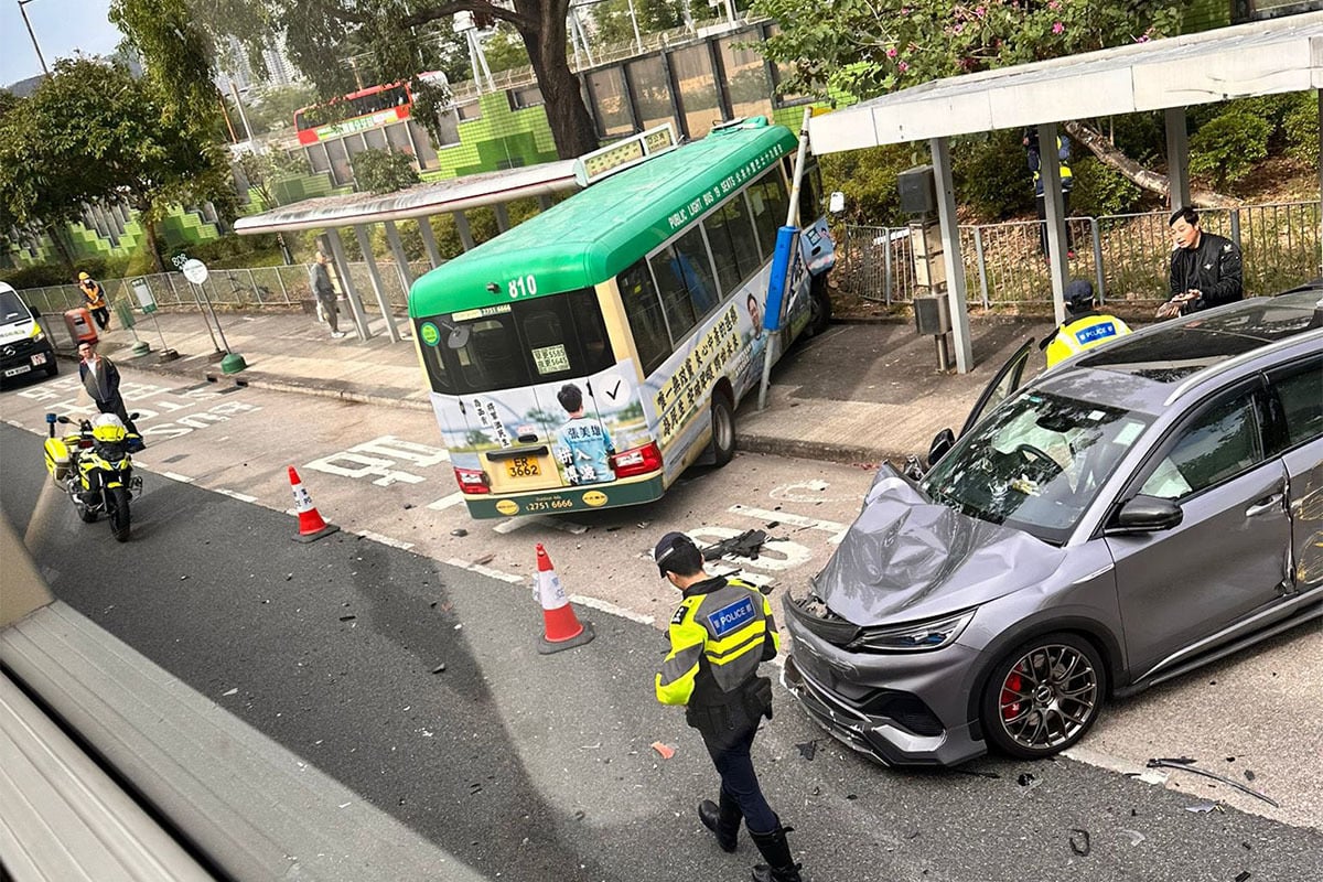 今日(19日)早上9時許,沙田發生一起交通意外,造成7人受傷。涉事小巴沿亞公角街行駛,在近沙田醫院對開,與一輛相反方向行駛的比亞迪私家車相撞。小巴失控剷上行人路,再撞向巴士站,小巴司機及6名小巴乘客受傷。傷者全部被送往威爾斯醫院治理。@