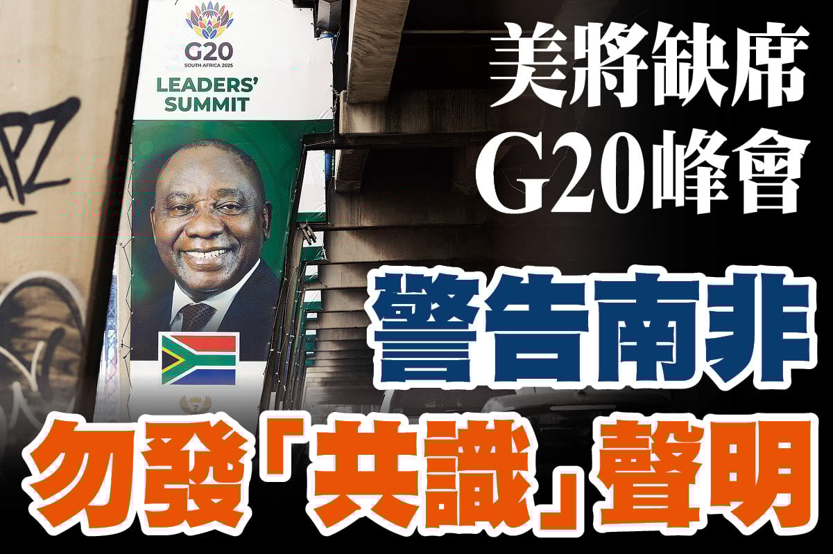 美國政府正式警告南非,不要在美國缺席20國集團(G20)峰會的情況下,以「G20共識」名義發表任何聯合聲明或宣言。
