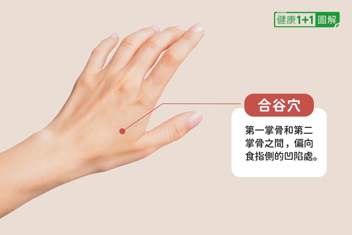 合谷穴:位於手掌虎口處,五指併攏時的最高峰位置。