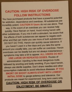 此暗網商店甚至提供多種寄送方式,並允許客戶留下評價。每一包毒品她甚至會「貼心地」附上一張吸毒過量「警示卡」,提醒買家務必身邊常備納洛酮(Narcan),還要避免獨自吸食毒品,並警告所售毒品「僅適用於有經驗的長期使用者」,因濃度極高。