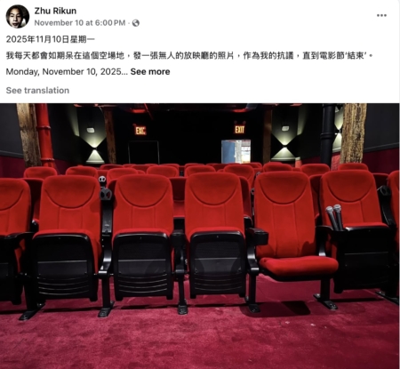 然而,距離正式開幕僅剩兩天,11月6日凌晨,朱日坤緊急宣布:電影節取消。所有公開放映、論壇、工作坊全面停辦;已售出的門票全額退費;場地改為私人聚會,不再對外開放。