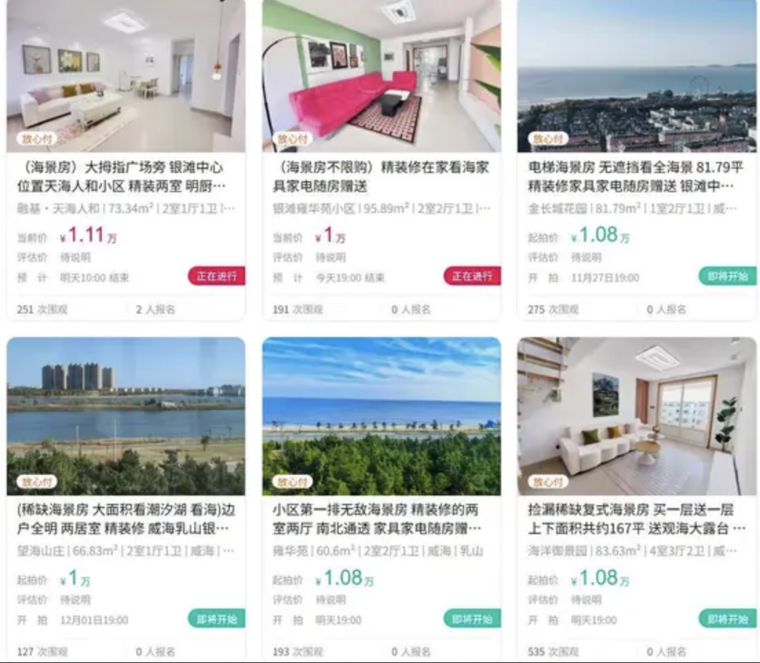 中國經濟惡化,房地產崩盤,多地樓盤跌出「白菜價」。近日,有河南民眾花8萬元人民幣,網購了一套位於山東威海乳山的海景房。引起網民們關注。