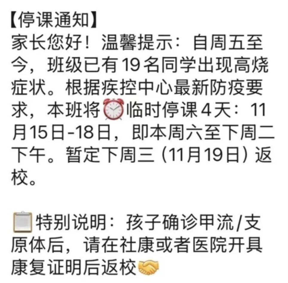 不少深圳家長也發帖稱,流感太兇猛,孩子班裏不少人請假,甚至有的收到了停課通知。