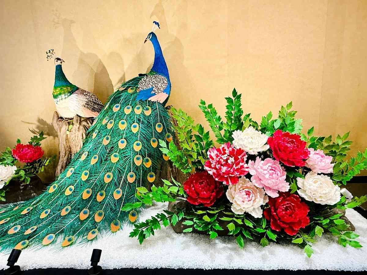《花美麗鳥》在四年一次的日本「全國菓子博覽會」奪下2025年最高榮譽「名譽總裁賞」,以孔雀與盛放牡丹為主題,象徵日本傳統文化中的華貴、吉祥與新歲祝福。作品以白豆沙、砂糖、米粉等和菓子原料製作,以逼真的花鳥風景展現日本傳統「工藝菓子」的精湛技藝。此種藝術源自江戶時代供幕府貴族欣賞的菓子文化,如今已成代表日本審美與匠心的象徵。