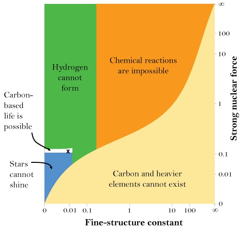 第十一,精細結構常數α=1/137。如果改變4%,碳無法形成;如果增加,恆星無法點燃。霍伊爾和里斯均視其為關鍵調整。
