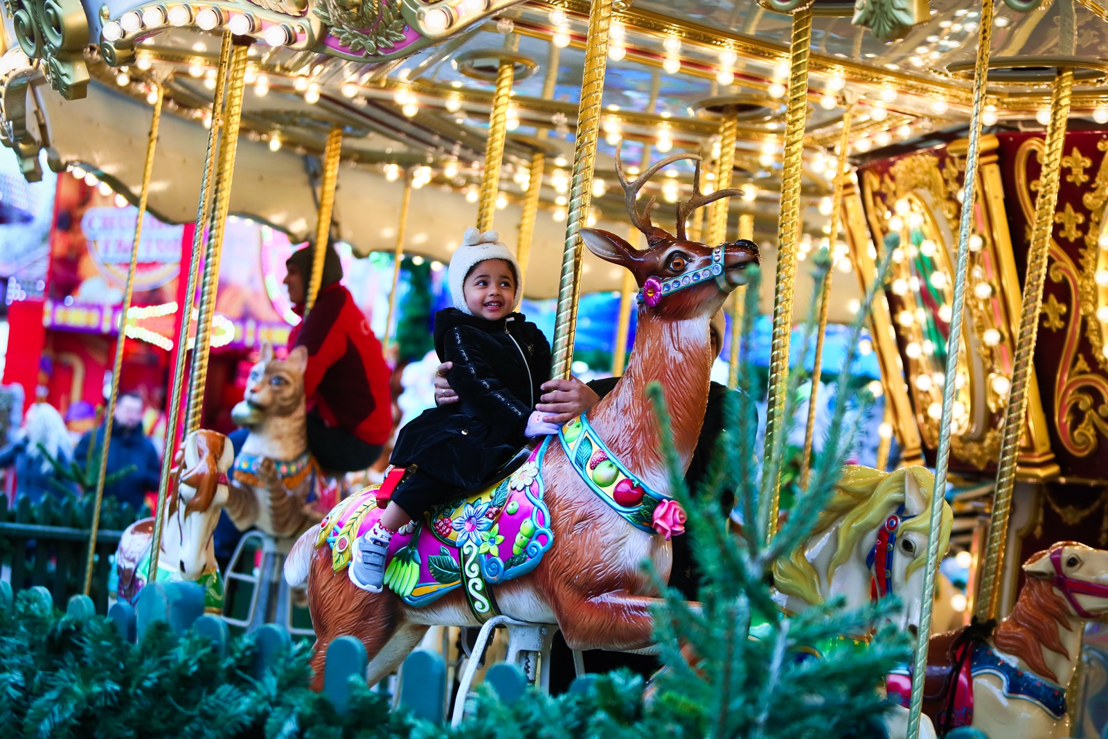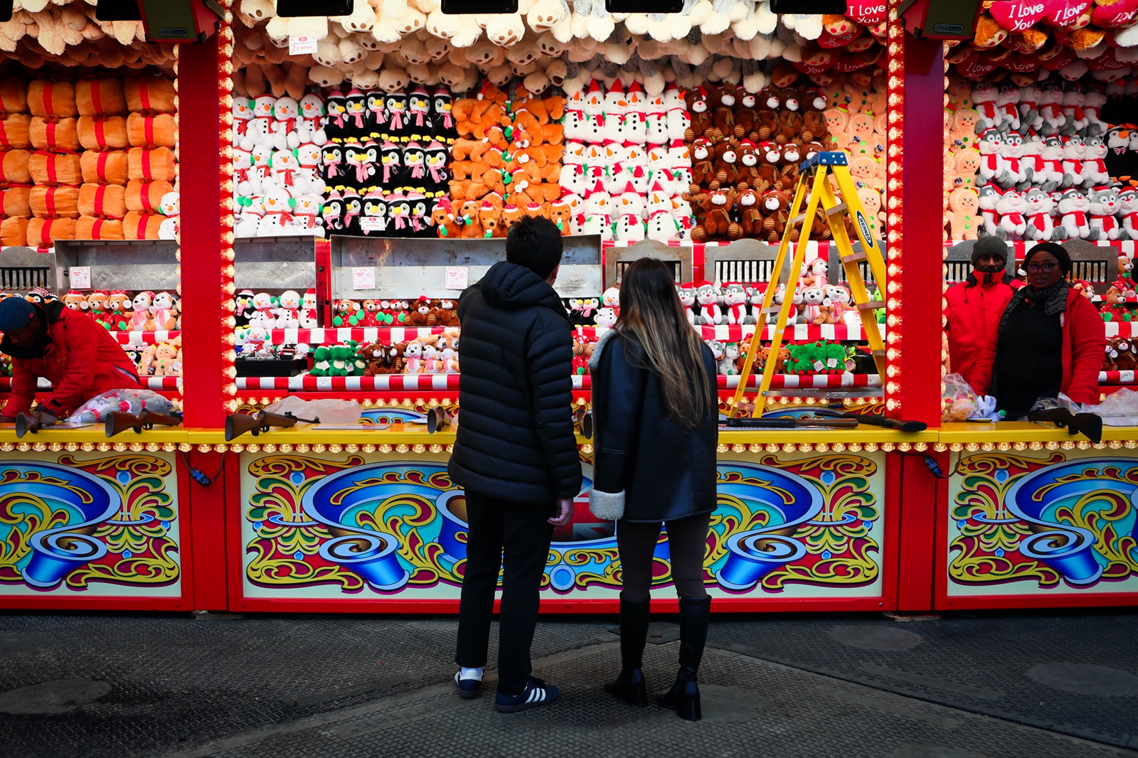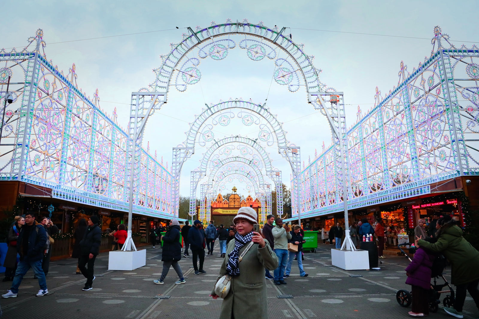 2025年11月16日,民眾參加在英國倫敦海德公園(Hyde Park)舉辦的「冬季仙境」(Winter Wonderland)活動。冬季仙境是倫敦最盛大的聖誕嘉年華,涵蓋聖誕集市、巨型摩天輪、露天溜冰場、啤酒村和冰雪王國等各種活動場地和設施。(Alishia Abodunde/Getty Images)