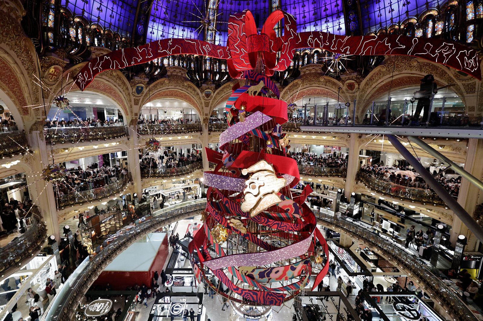 2025年11月12日,法國巴黎百年老字號商場拉法耶特百貨公司(Galeries Lafayette)舉行盛大的聖誕樹和櫥窗落成典禮。每年,這家知名百貨公司都會用標誌性的聖誕樹為歲末節日增添驚喜繽紛的氛圍,吸引來自世界各地的遊客到場參觀。(STEPHANE DE SAKUTIN/AFP via Getty Images)