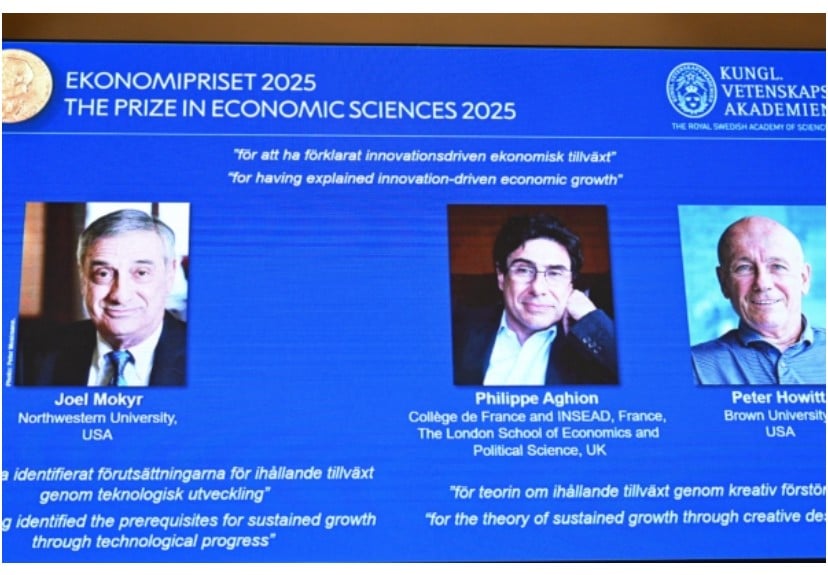 10月13日傍晚,在中東和平有望氛圍中,傳出2025年諾貝爾經濟學獎得主揭曉訊息,由荷蘭裔美國經濟史學家莫基爾(Joel Mokyr)、法國經濟學家阿吉翁(Philippe Aghion)和加拿大裔美國布朗大學教授豪伊特(Peter Howitt)三位學者共同獲獎。莫基爾獨得1,100萬瑞典克朗(120萬美元)的一半,另一半由阿吉翁和豪伊特共同獲得。