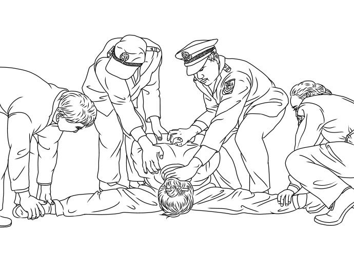 幾個夾控還一起上來給他「撕胯」,就是把兩腿用力往兩邊拉直,呈一字型。