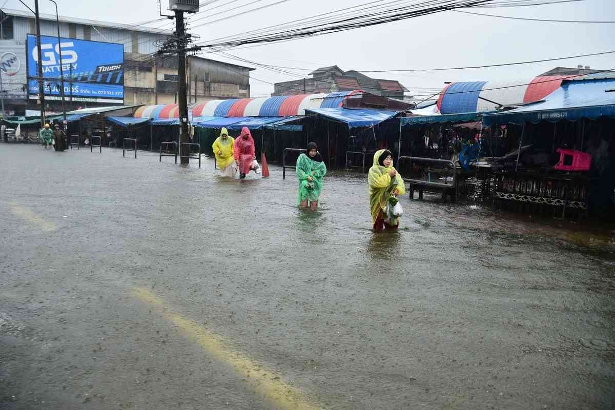 綜合媒體報道,宋卡府(Songkhla province)經濟重鎮合艾市(Hat Yai)自上周末起持續降雨,上周五(21日)單日降雨量達335毫米,打破了過去300年來的紀錄。泰國氣象部門預計,本周該地區預計仍有持續較強降雨並有洪水風險。