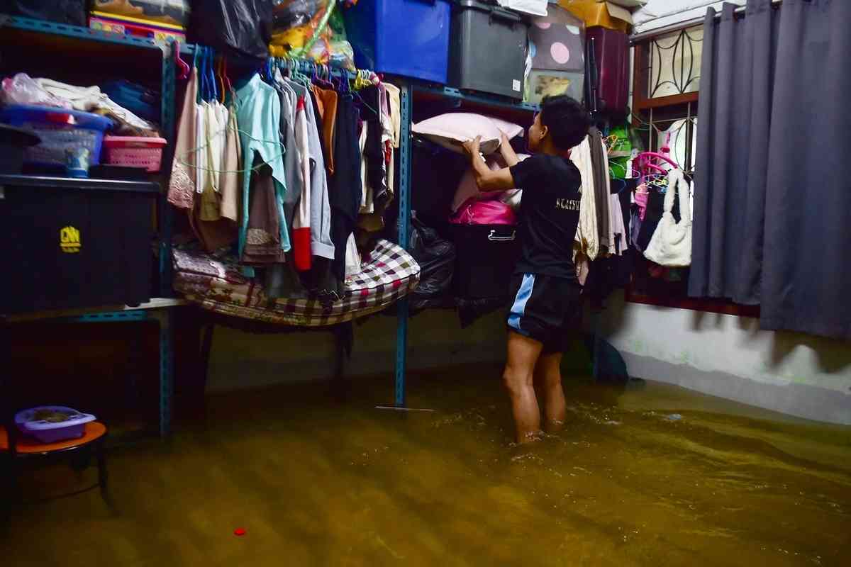 2025年11月25日,泰國南部那拉提瓦府(Narathiwat)Mueang縣Ban Yakang區發生嚴重洪澇災害,當地一戶民宅進水,屋主設法將家居用品放在高處。(Madaree Tohlala/AFP via Getty Images)