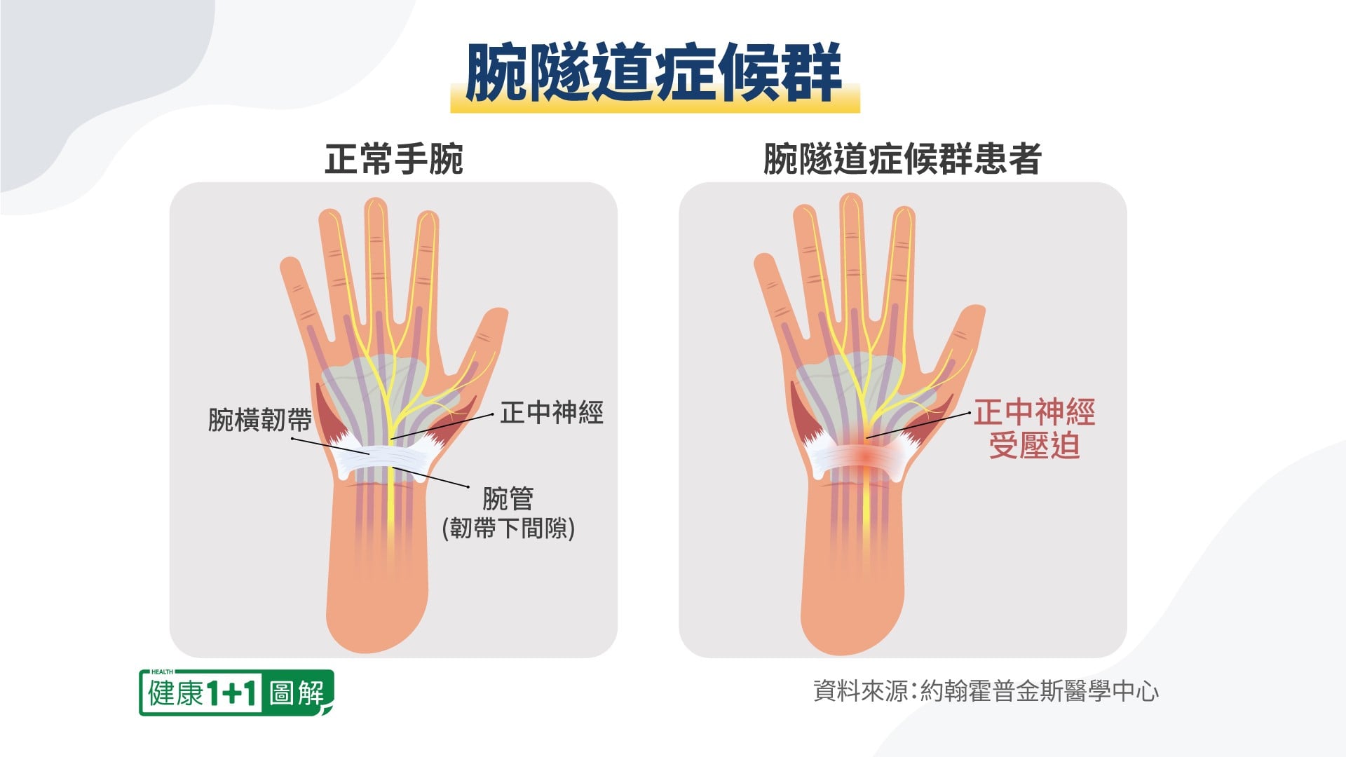 其中一種常見的手麻是由腕部正中神經受壓所導致的,也稱作「腕隧道症候群」。研究發現,糖尿病患者較易出現腕隧道症候群。