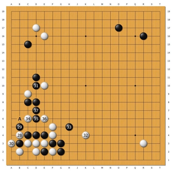 在左下角的定型中,白棋打拔一子價值不菲。黑37連,是一步問題手,給對手留下白A夾的手段,所得極為有限。白棋勝率悄然上升。