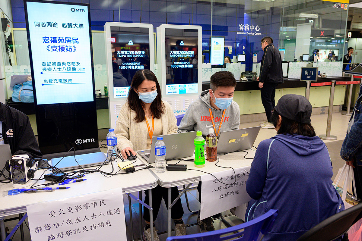 大埔宏福苑五級火災已經過兩天,港鐵今日(28日)宣布捐出1,000萬元(港元,下同,特別標示除外)援助災民,並向每名受影響的居民派發已備2,000元增值額的八達通卡,以便他們出行及其它日常用途。