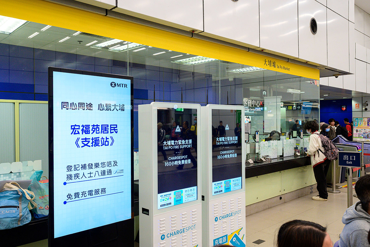 港鐵位於大埔墟站的支援站會免費借出流動充電器,供有需要的人士使用,支援站於早上7時至晚上11時運作。港鐵公司會密切留意居民需要,調整支援站的服務,為社區提供協作。港鐵「鐵路人鐵路心」義工隊亦隨時候命,協助支援站的服務。