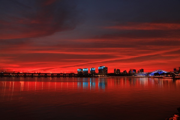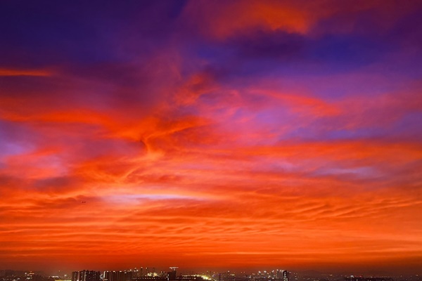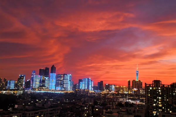 此外,11月27日傍晚,廣州晚霞因色彩絢麗、畫面唯美,在朋友圈和社交媒體上持續傳播,影片和照片顯示,天空呈現罕見的暖橘色與紅橘色交織的雲絮,整個天空都燒紅了。網民形容,火燒雲熔化了天空、大自然打翻調色盤。