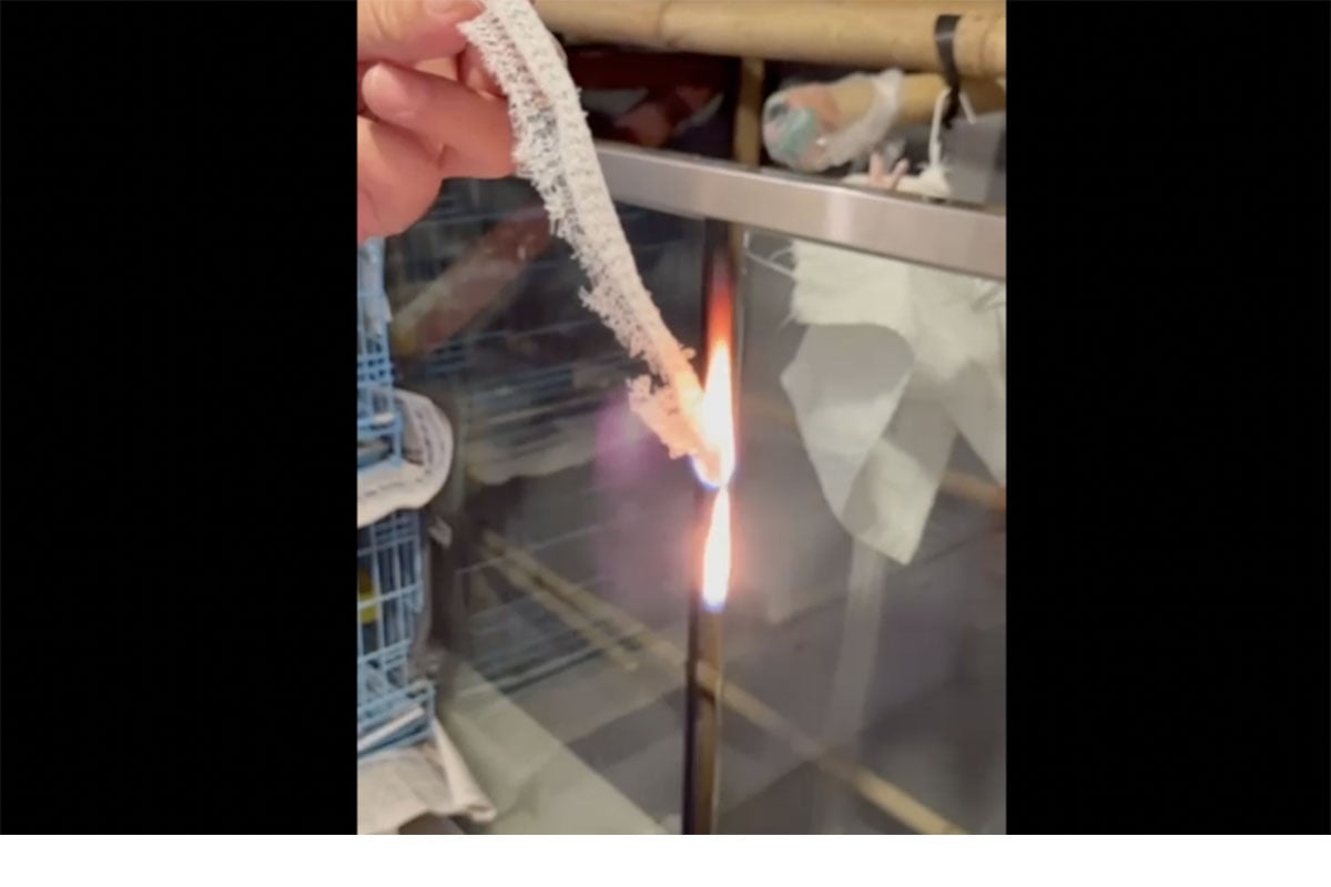 事故發生後,居於南區薄扶林的碧瑤灣有住戶上載影片,稱該屋苑第四期由宏業承辦外牆維修,並以自行取下的棚網樣本進行燃燒測試。影片中可見,住戶剪下一塊橙色棚網後點火,火勢迅速蔓延並伴隨熔化後掉落的情況;該住戶在片中表示,承辦公司曾稱有關材料「防火」,但測試結果令住戶憂慮工程安全,形容燃燒情況「好像蠟燭一樣」。📞大埔宏福苑火災查詢熱線