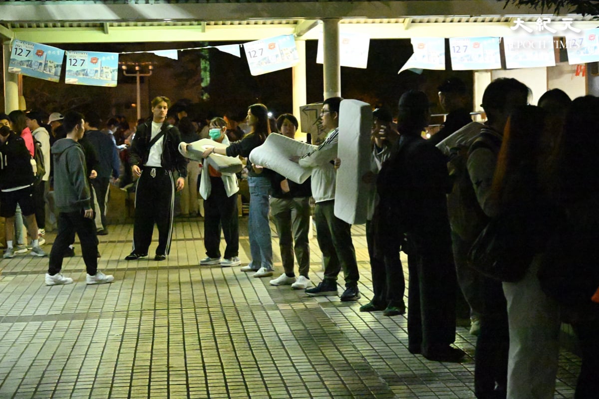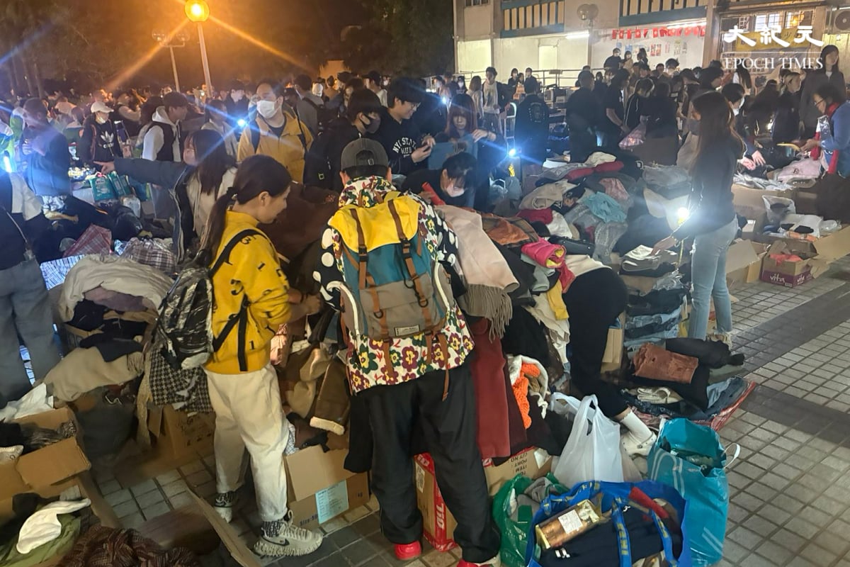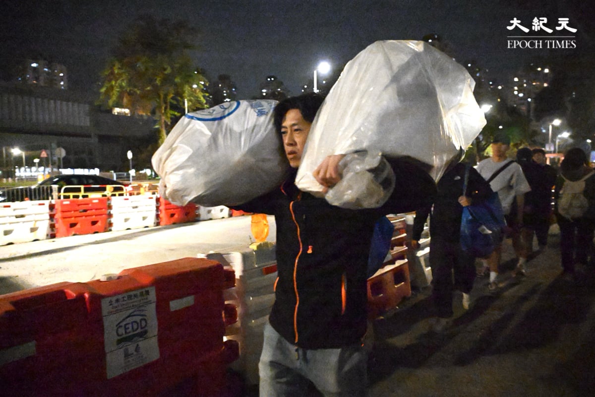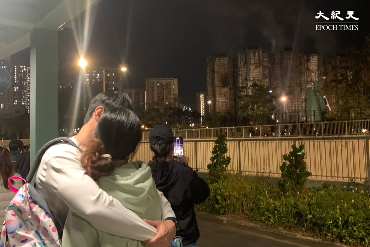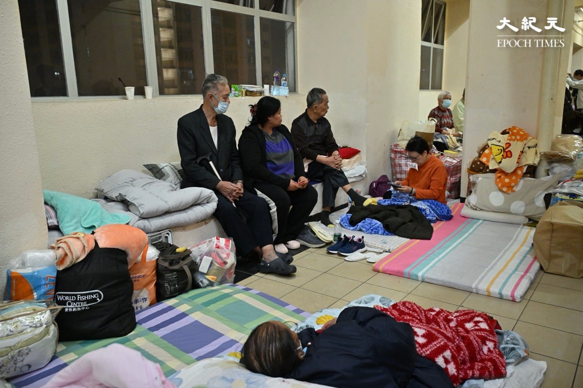 大火波及大埔廣福邨部分樓宇,當局已設立臨時庇護中心供居民暫住,隨著入夜後氣溫轉涼,不少居民苦候當局安排短暫上樓收拾家當,記者現場所見,部分居民選擇棲身街道或冷巷「打地鋪」渡晚。有廣佑樓及廣禮樓的住戶表示,如要回家取物,往往需等候警方安排逾一小時才能上樓,形容過程漫長又寒冷,希望當局加快安置與協助安排。