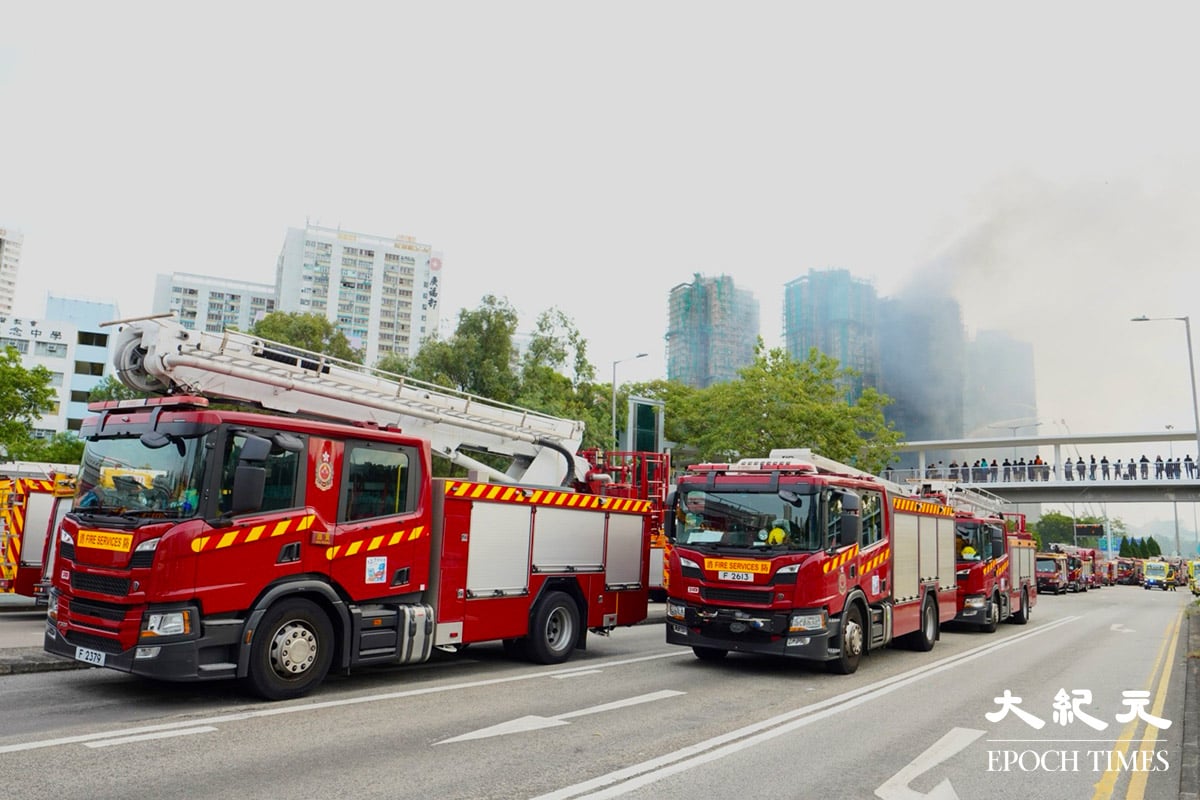 今日(27日)上午,多個單位火勢依然猛烈,濃煙冒出。消防出動多條喉,在大廈內外射水灌救。根據網路資料,宏福苑共有八座大樓、均為31層樓高,可容納1984戶。