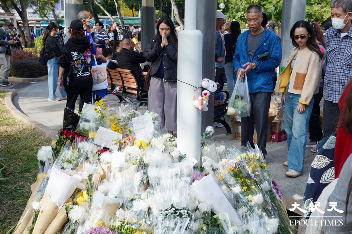 大埔宏福苑5級大火奪走逾百人生命,至今仍有超過200人失蹤,多名市民今日到火災現場附近悼念。