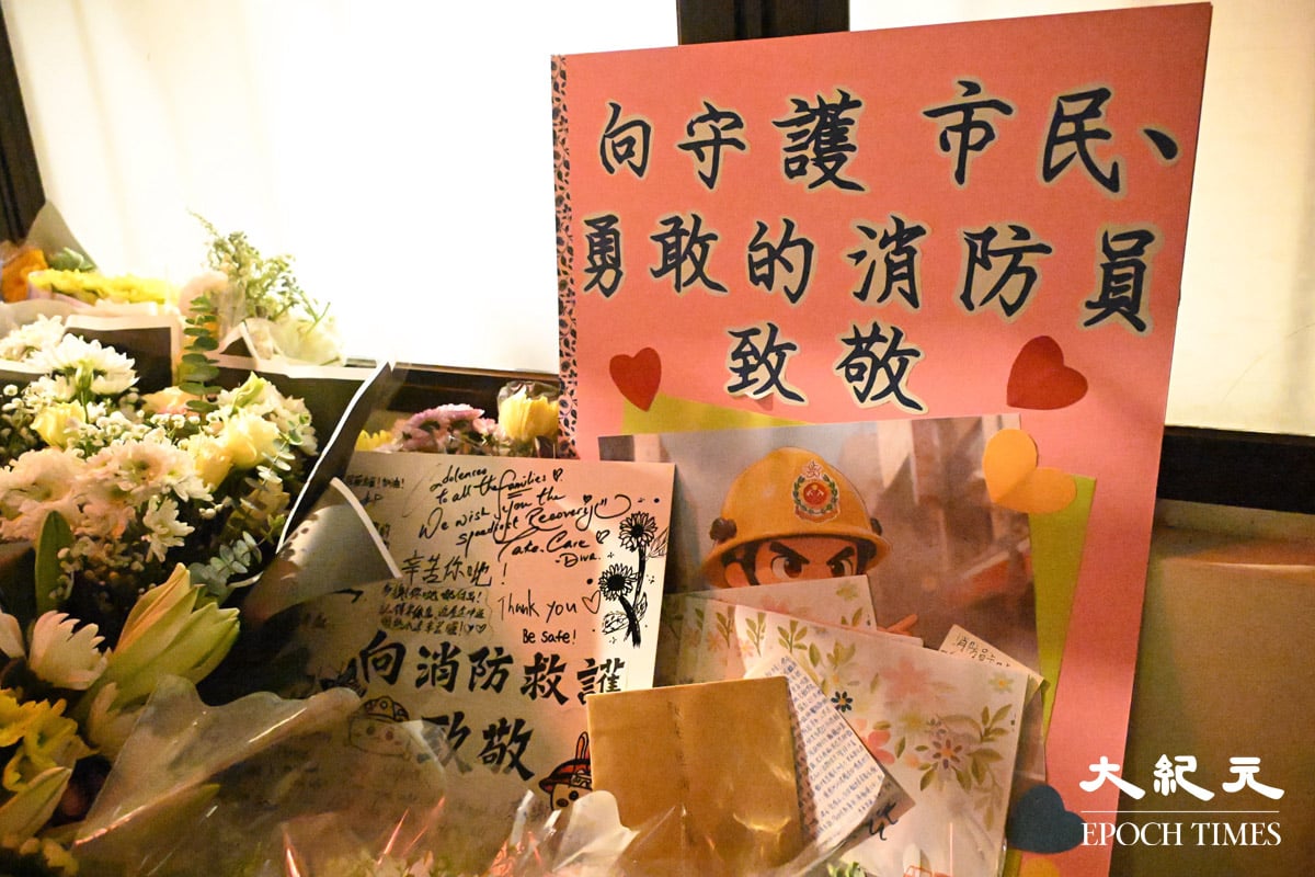 大埔宏福苑5級大火,37歲的消防員何偉豪在救火期間殉職,他生前駐守的沙田消防局今早(29日)下半旗,不少市民今日到消防局外獻花及送上心意卡。消防處正為何偉豪的家人募捐,接受公眾捐款。