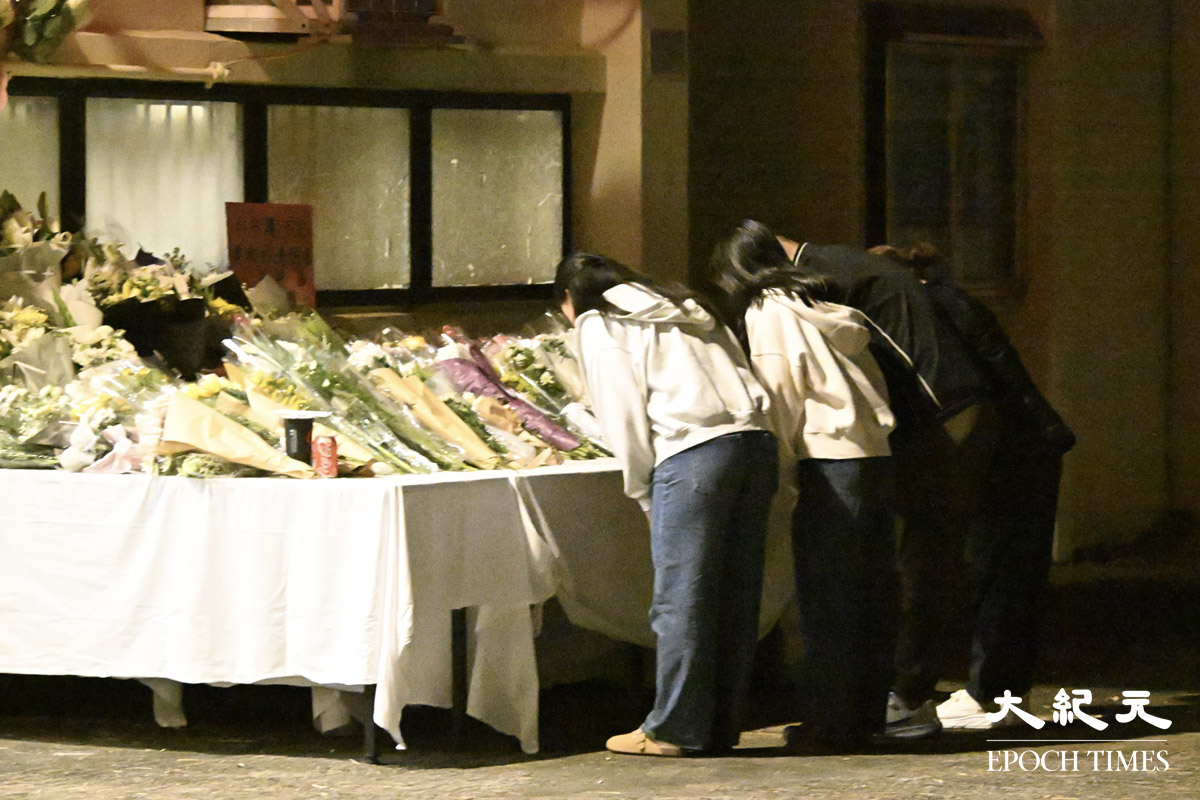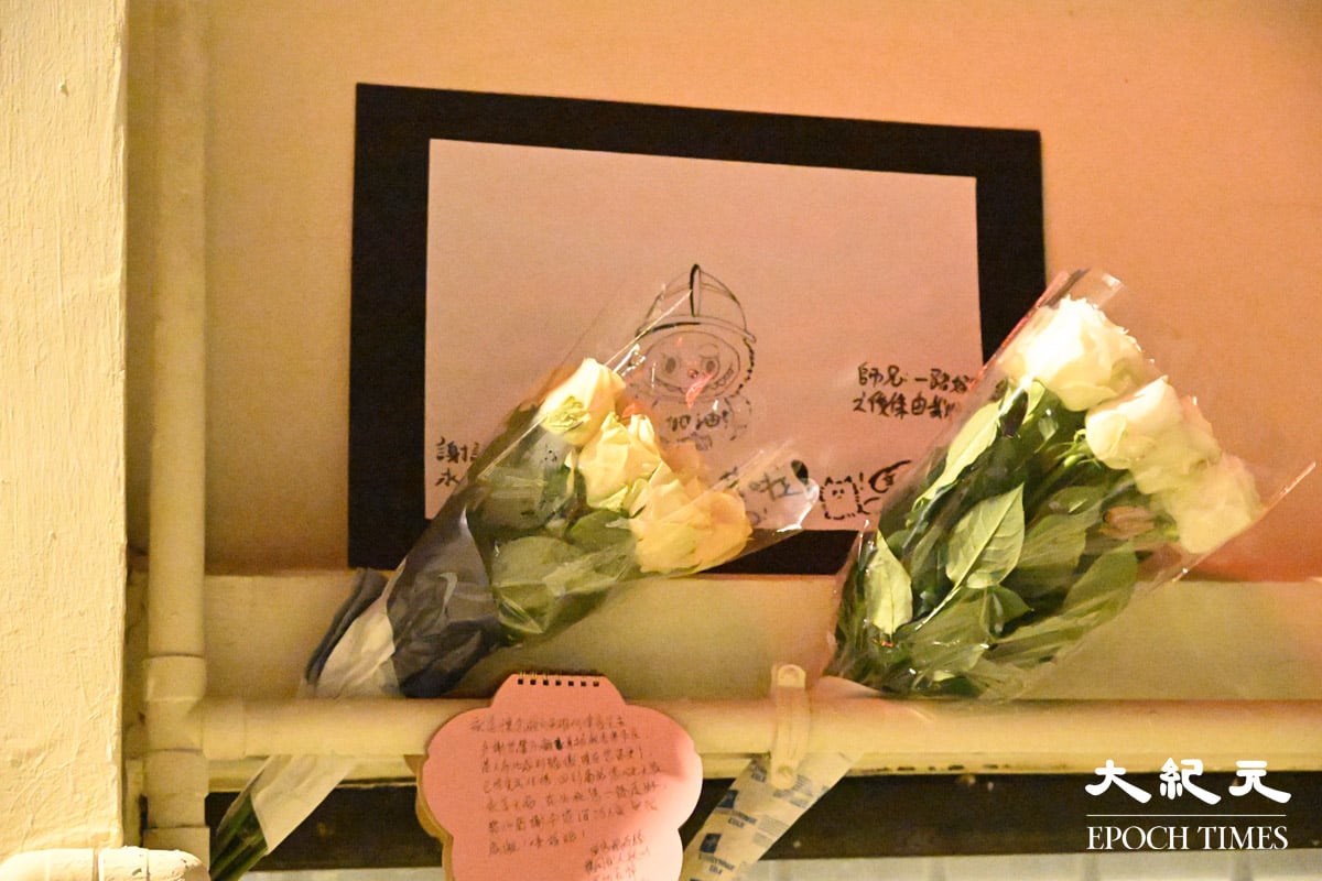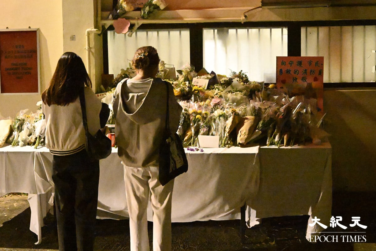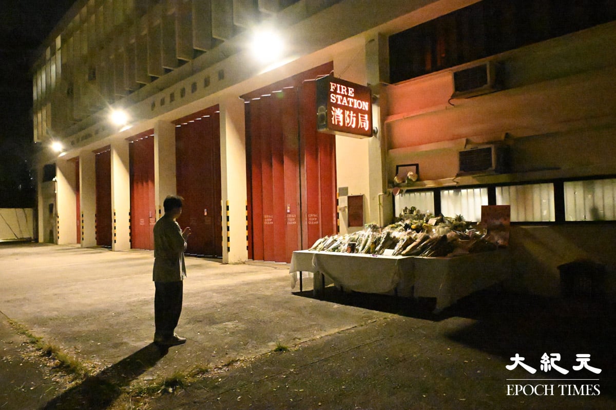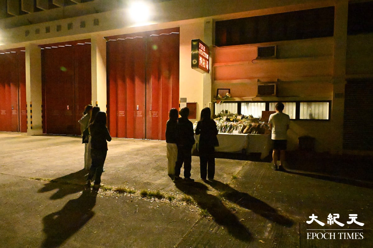 市民馬女士和梁女士今日傍晚到消防局外獻花悼念,她們表示剛在大埔向火災罹難者悼念,其後就來到沙田消防局,心情很低落,亦知道何偉豪女朋友的事,感到可惜。