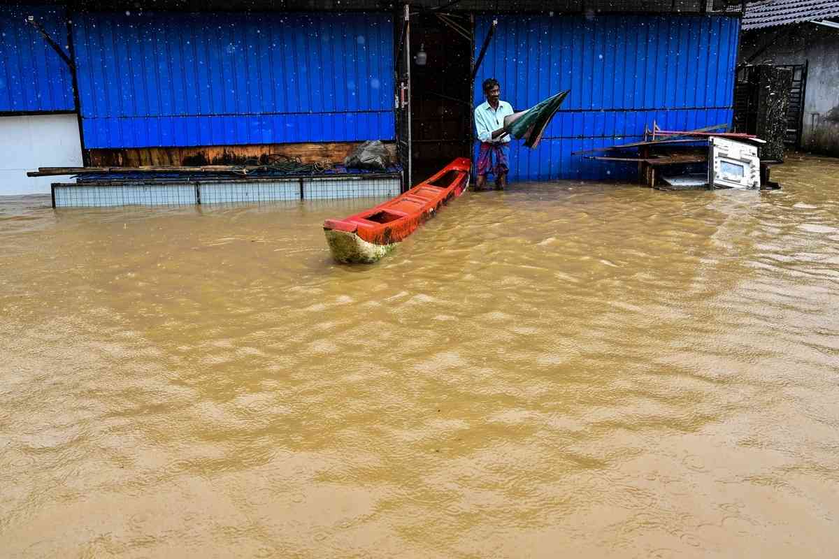 2025年11月28日,科倫坡郊區卡杜韋拉(Kaduwela)遭遇強降雨後,許多民宅被水淹。(Ishara S. KODIKARA / AFP via Getty Images)