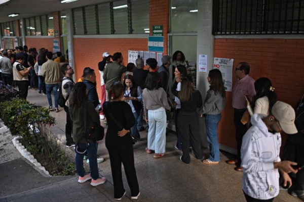 在首都的一個投票站,該國主要政黨在場外擺放了桌子、橫額、旗幟,並播放音樂。幾十人在附近學校的校門口排起了長隊等待投票。
