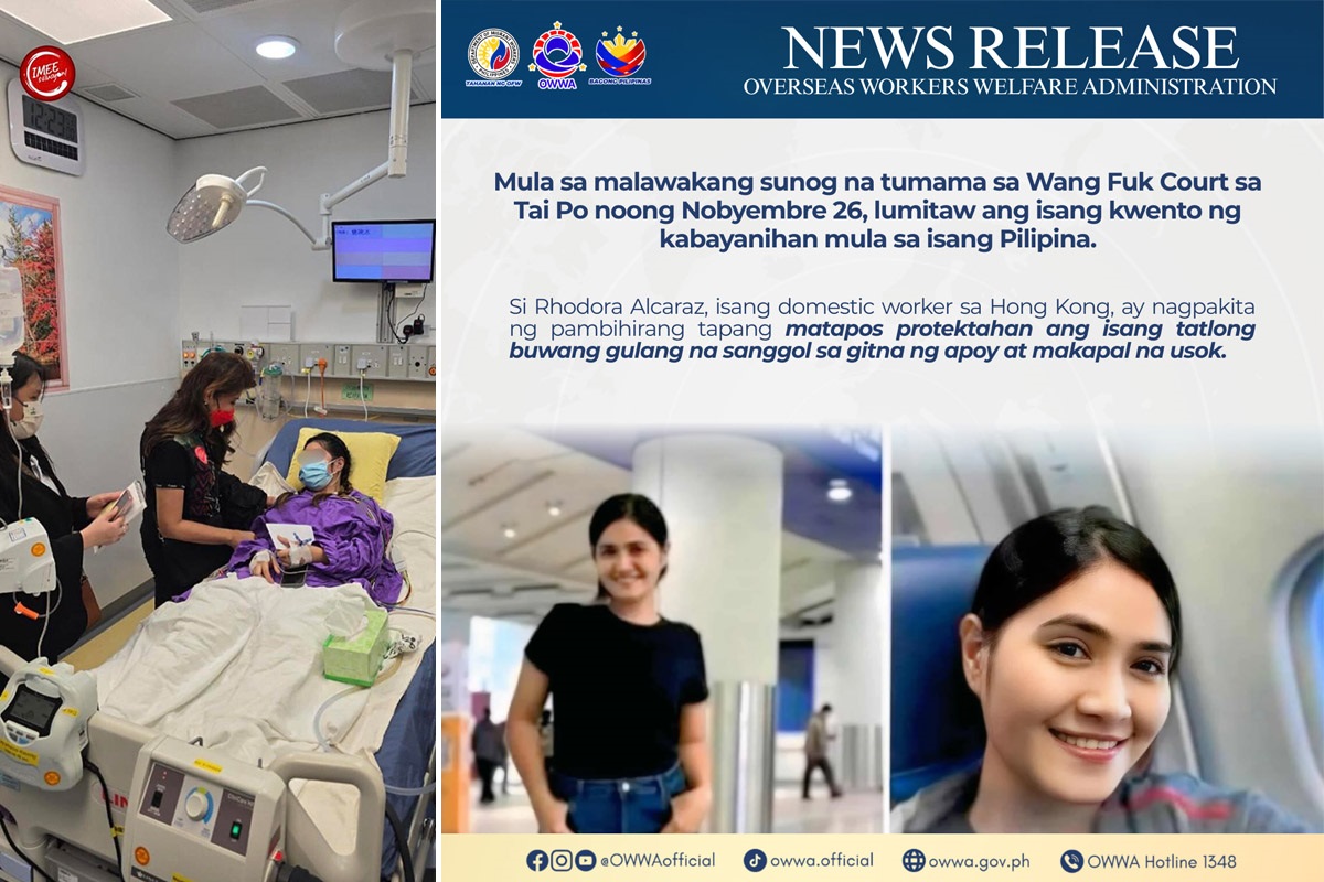 菲律賓海外勞工福利署(OWWA)帖文指,Rhodora來港不久,她在火警及濃煙下沒有獨自逃跑,而是選擇留下,保護僅有3個月大的少主。OWWA、菲律賓駐港領事館均有派員前往探望留醫的Rhodora。
