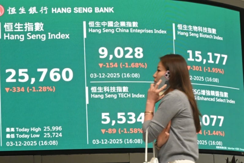 美股昨夜普遍向上,內地A股表現疲弱,港股低收。恒指今(3日)早低開114點,隨後一直下行,盤中低位挫370點,最終收市報25,760點,跌334點(即降1.3%),成交額1,644億。國指下跌1.7%、科指走低1.6%。