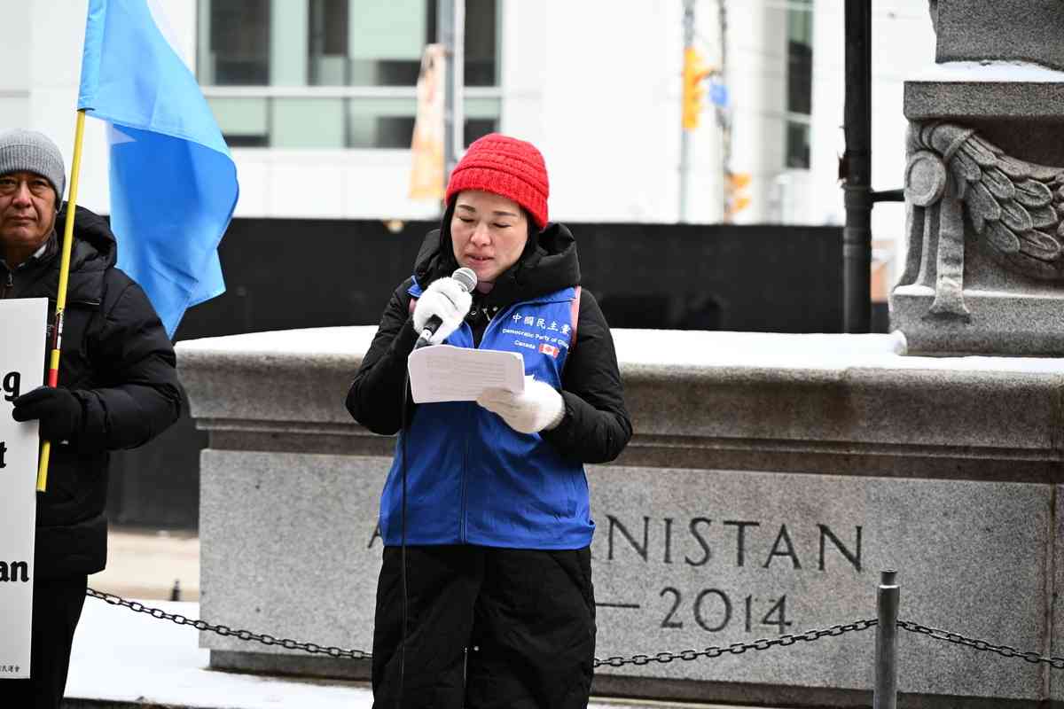 多倫多支聯會共同主席吳溫溫在發言中譴責專制政權破壞香港的自由、民主及人權。她說,香港火災造成一百五十多人死亡,這是一場人造的災難,本可以避免。當真相被視為危險,當批評被視為反政府行為時,已證實香港社會的危險性。