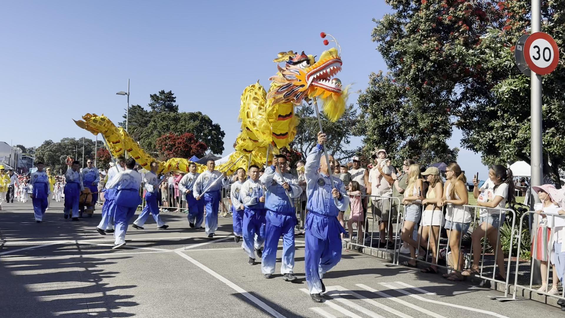 11月29日,舞龍隊與天國樂團匯合,共同參加了奧克蘭海邊社區奧雷瓦的聖誕遊行。