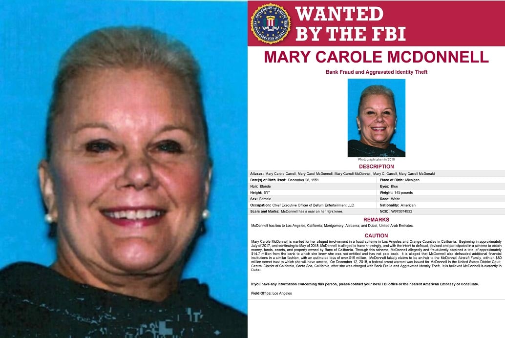 美國聯邦調查局(FBI)正在通緝74歲的Mary Carole McDonnell,她涉嫌冒充美國航太先驅企業家族的繼承人,在加州詐騙近3,000萬美元。