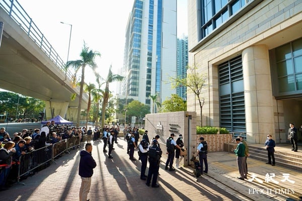 據《大紀元》報道,今天早上逾百人在法院外排隊等候旁聽,包括多國領事館人員。部份市民14日已到場等候,據報有人講普通話。另外,今天有大量警察在場戒備。