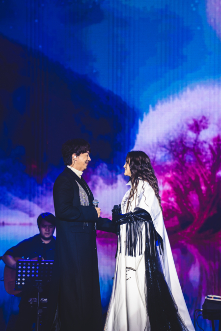隨後,夫妻二人攜手獻唱《生命之花》,深情對唱中充滿默契與溫柔,對望、微笑、細膩互動,讓全場瞬間融化。兩人的自然互動亦多次逗笑觀眾,令現場氣氛既溫暖又愉悅。