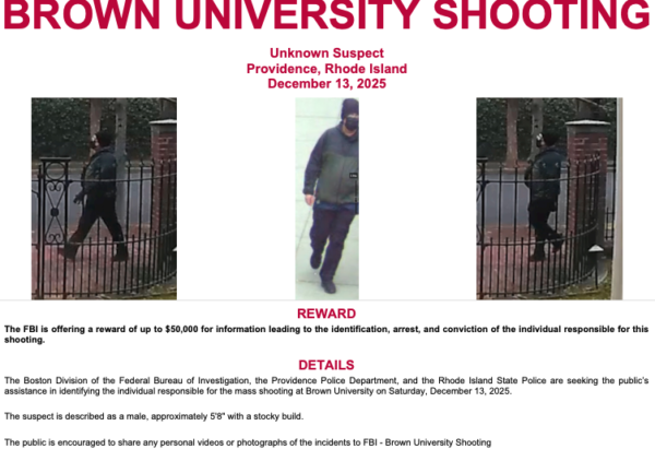美國羅德島州布朗大學上周六(12月13日)發生致命槍擊案,造成兩死九傷。警方周一(15日)公布一段新的疑犯影片。搜捕行動已經持續三天,美國聯邦調查局(FBI)懸賞5萬美元徵集槍手線索。