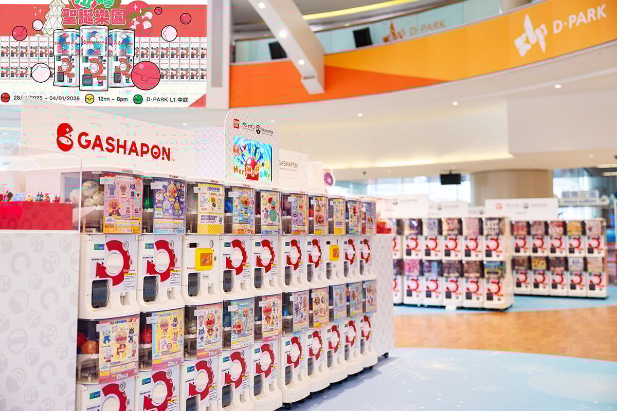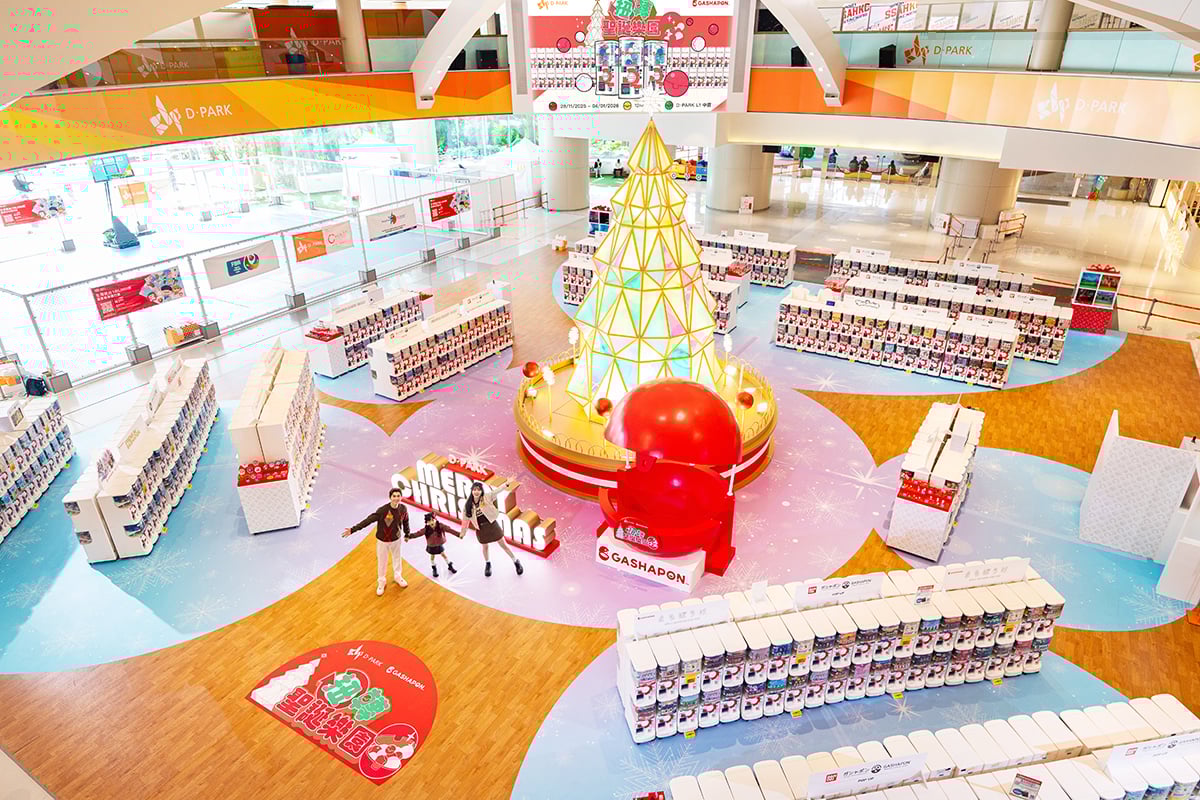 今個聖誕,荃灣D‧PARK首度聯乘日本知名玩具品牌Bandai 「Gashapon」,由2025年11月28日至2026年1月4日,於商場1樓中庭舉辦「『扭』轉聖誕樂園」。作為Bandai 「Gashapon」在大中華區首個大型扭蛋主題展覽的首站,現場雲集多達1,000部扭蛋機,超過900多款人氣動漫及卡通品牌扭蛋,以及Bandai 「Gashapon」 限定的平面扭蛋。場內更設有8米高閃亮幻彩聖誕樹及扭蛋殼回收裝,還有「Ho-Ho-Ho!Adventure」互動遊樂區,包括5米高聖誕滑梯波波池及5米高巨型打卡夾公仔機。