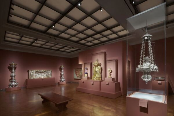 其中一間展廳專門陳列來自法國的聖器與祭服。大型聖所燈、大型遊行十字架、六座祭壇燭台,以及紅色主教祭服(Pontifical Vestments)等物件,以彌撒儀式般的戲劇性方式呈現。其中,祭服包含壇前飾物(祭壇帷幔)、三件圓氅衣(cope,神職人員於隆重慶典及遊行時穿著),還有兩件執事袍(dalmatic)。