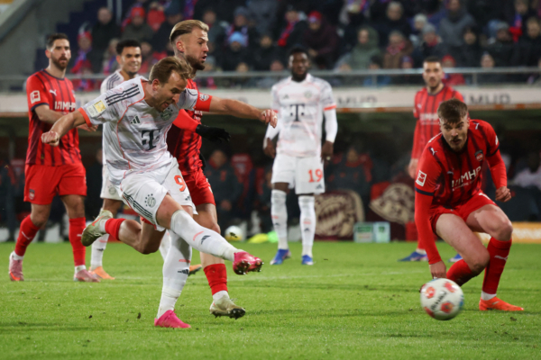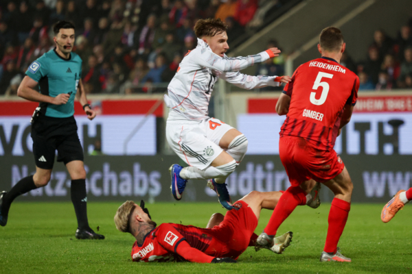 比賽開始後,拜仁反客為主,向對手大門開啟了猛攻。第15分鐘,拜仁開出右側角球,隊友頭槌擺渡到門前,「鐵衛」斯坦尼西奇頭槌破門,為「南大王」取得了一個夢幻般的開局。第32分鐘,海登海姆門將解圍被隊友撞翻,伊藤洋輝的傳球打在對方防守球員身上後變線,門前的奧利塞輕鬆得球,推射建功,將領先優勢擴大為2球。