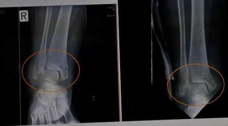 2015 年 11月,王久春在漢米爾頓市遭遇嚴重車禍,檢查確認膝蓋、腳後、雙腳踝骨等多處粉碎性骨折。醫院專家組醫生告知要立即手術,否則會殘廢或有生命危險。可她不願身體中被嵌入數塊最長8吋的鋼板,更不願意在醫院裏躺上一年半載,她知道即使那樣,也不能完全保證她能像以往一樣行走自如。她心裏確信法輪功能讓自己恢復正常。於是,她拒絕了手術,並在律師幫助下與醫院簽署免責協議,回了家。當時她全身腫痛,生活完全不能自理。