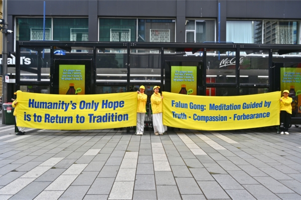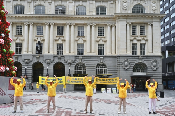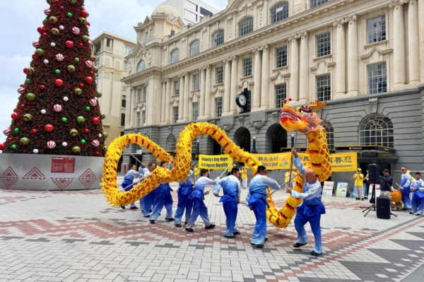 12月27日正值聖誕、新年假期,節日氣氛濃烈。紐西蘭部份法輪功學員齊聚奧克蘭市中心的伊利沙伯女王廣場(Te Komititanga Square),舉行迎新年、傳播真相的集會活動,通過集體煉功、舞龍、分享經歷和徵簽等形式,向紐西蘭民眾傳遞法輪大法及「真、善、忍」的美好,並送去新年的祝福。