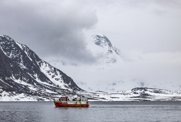 2025年5月4日,漁民在格陵蘭首都努克(Nuuk)附近的北極水域。(John Fredricks/英文大紀元)